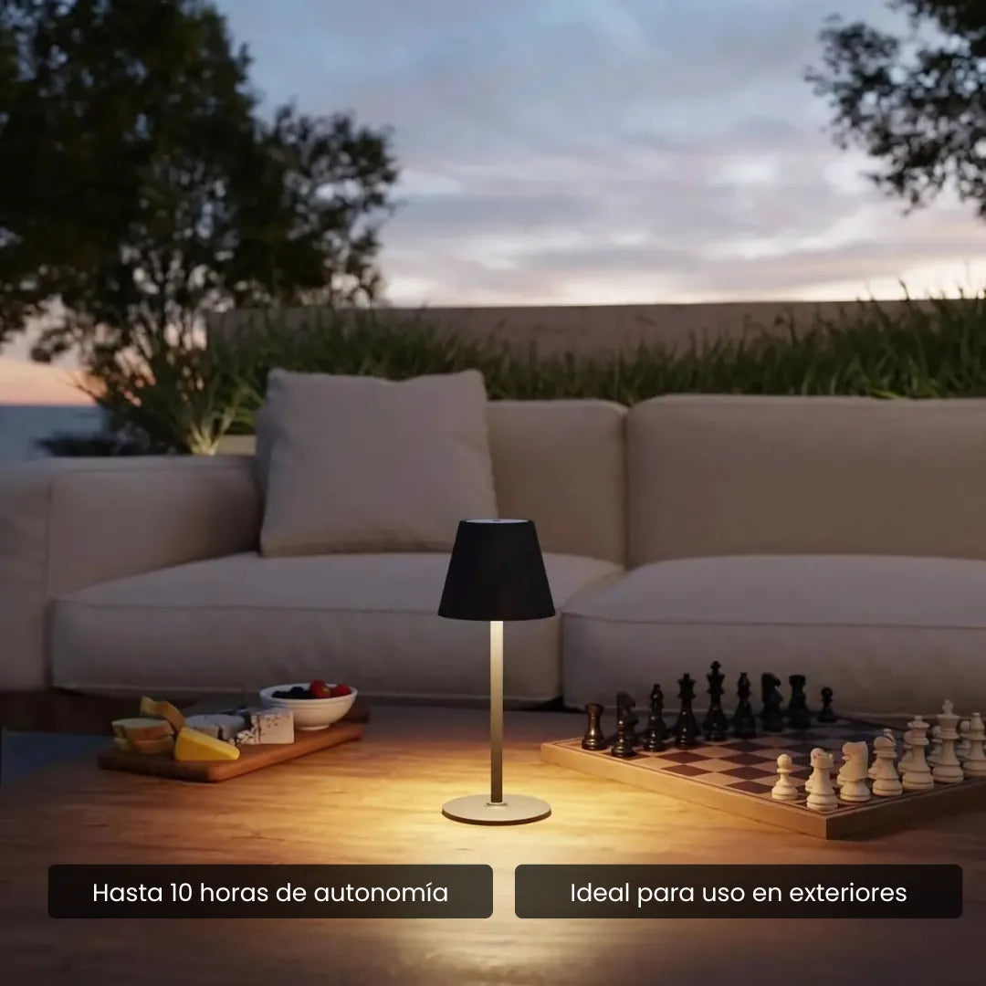Con su silueta atemporal y acabado negro mate, Veros aporta una sensación de calma y simplicidad a cualquier espacio, tanto interior como exterior. Esta lámpara de mesa portátil encaja perfectamente en una mesa de jardín, una mesita auxiliar o una mesita de noche, creando al instante un ambiente cálido e íntimo.
