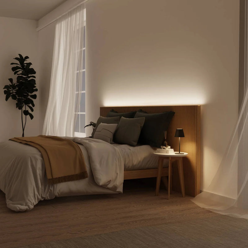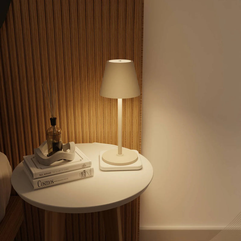 Gracias a su batería recargable integrada, no necesitas enchufes. Basta un solo toque para dar vida a Veros — con luz intensa, tenue o en el punto justo. Así puedes adaptar la iluminación a cada momento.
