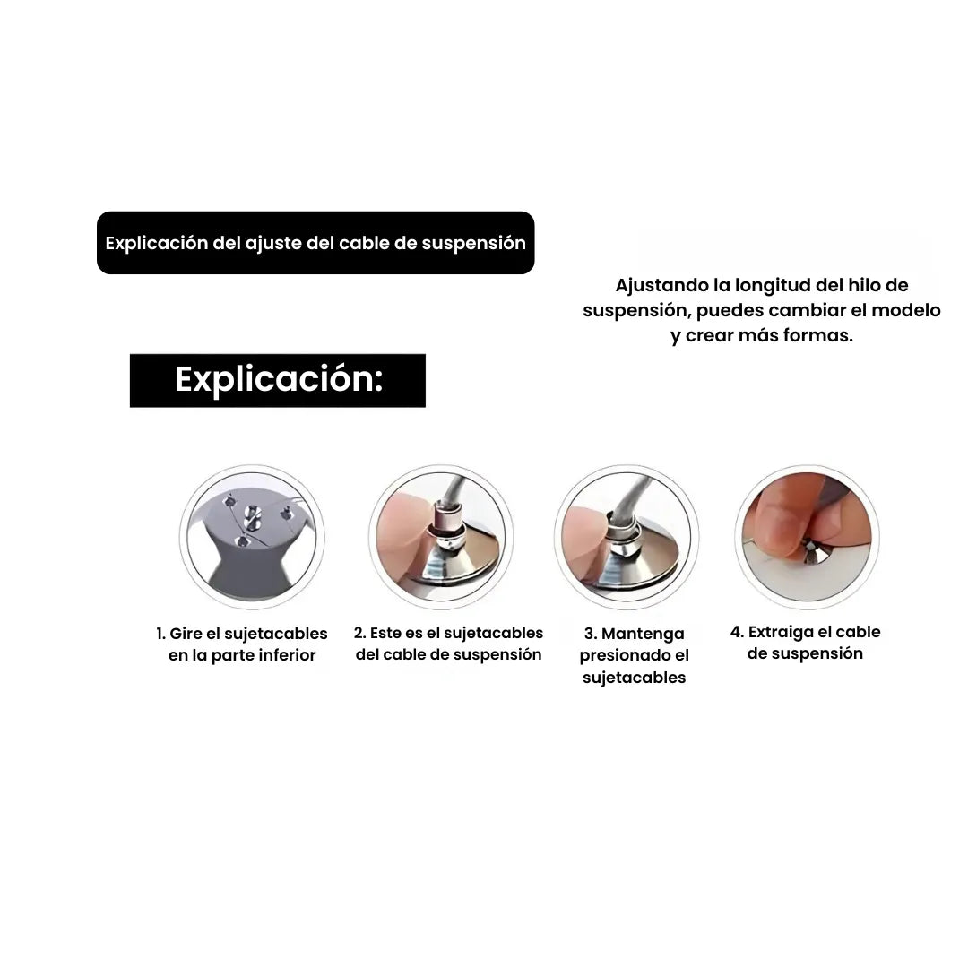 Gracias a su suspensión ajustable, puedes adaptar fácilmente la altura según el ambiente. Sutil en forma, potente en efecto.