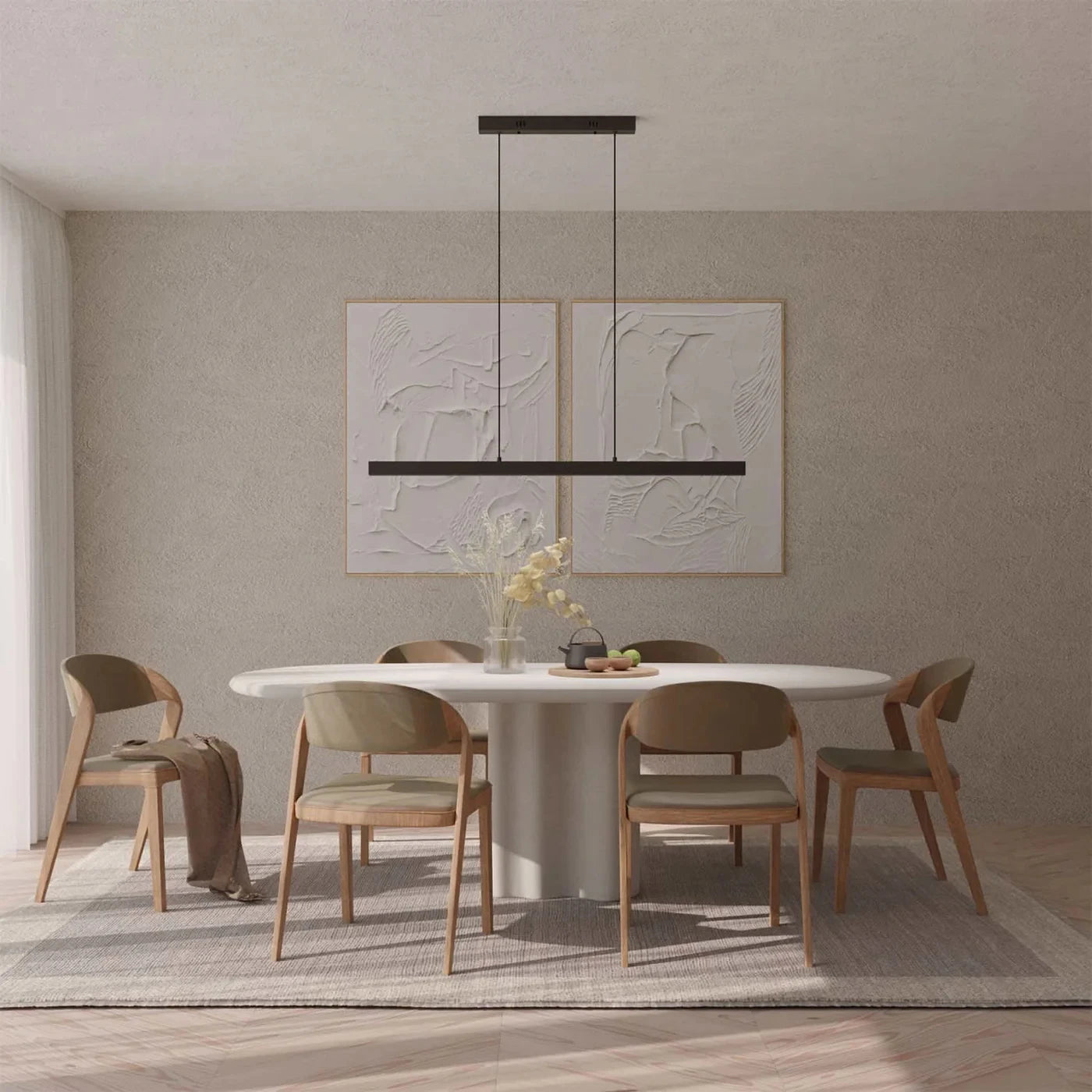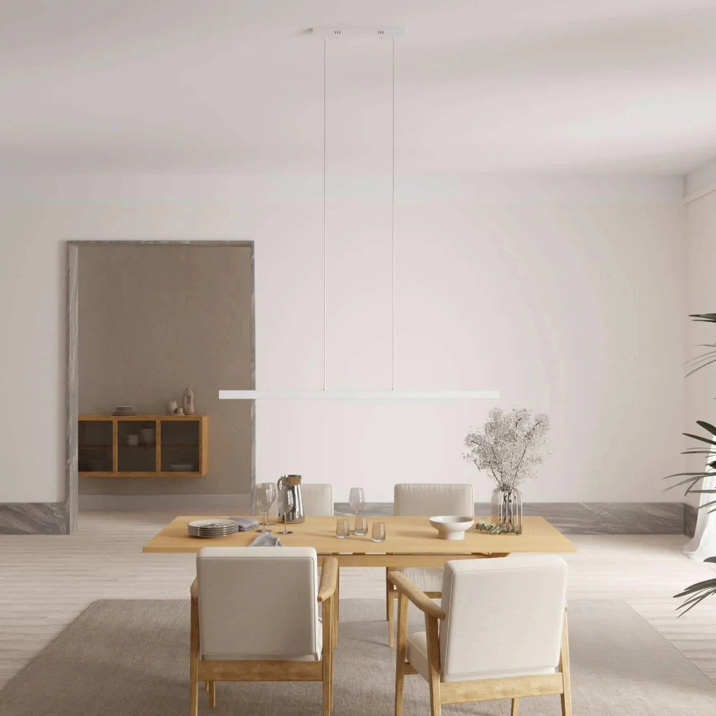 Avono es una oda al minimalismo. Un perfil delgado y elegante que no busca protagonismo, sino que aporta calma a cualquier espacio. Con su precisión geométrica y acabado mate, esta lámpara colgante está diseñada para interiores modernos que valoran el equilibrio y la sofisticación.