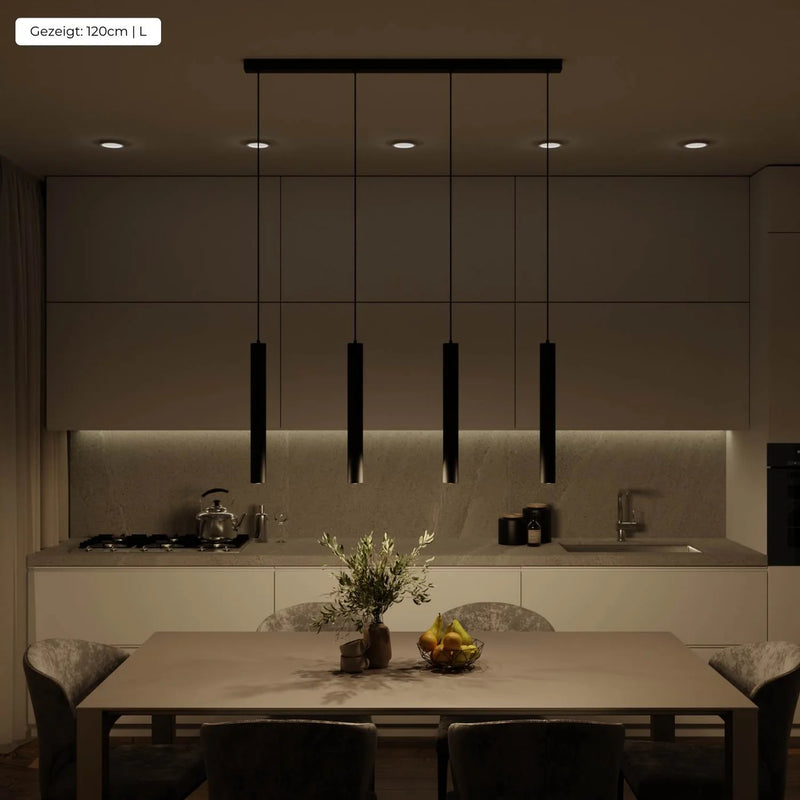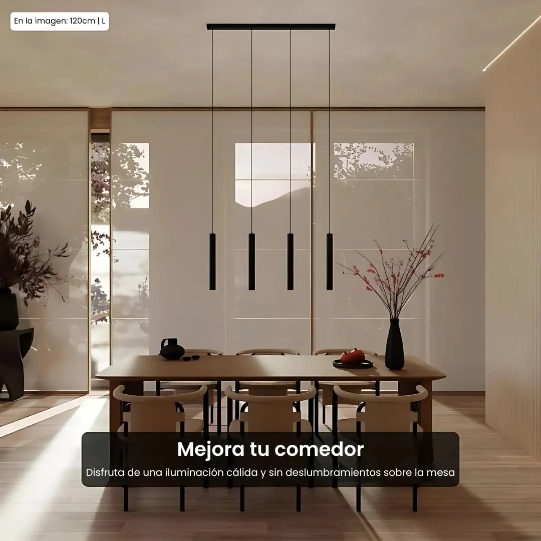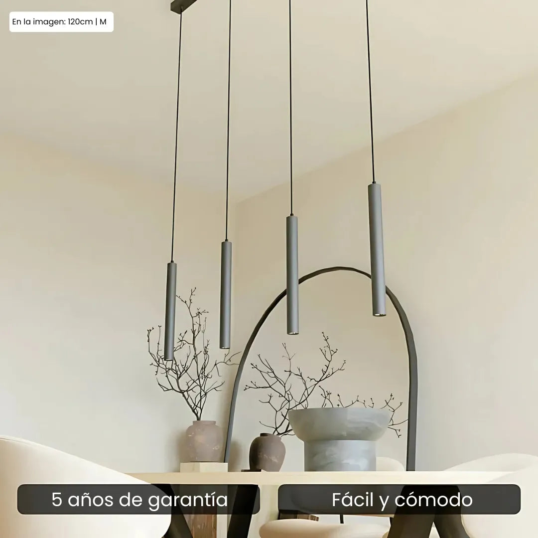 La lámpara colgante Learis combina un diseño moderno con una iluminación acogedora en un modelo atemporal. Con sus cuatro finos colgantes negros, aporta calma y elegancia, convirtiéndose en la elección perfecta para colocar sobre la mesa del comedor, la isla de cocina o en un rincón acogedor de la sala.