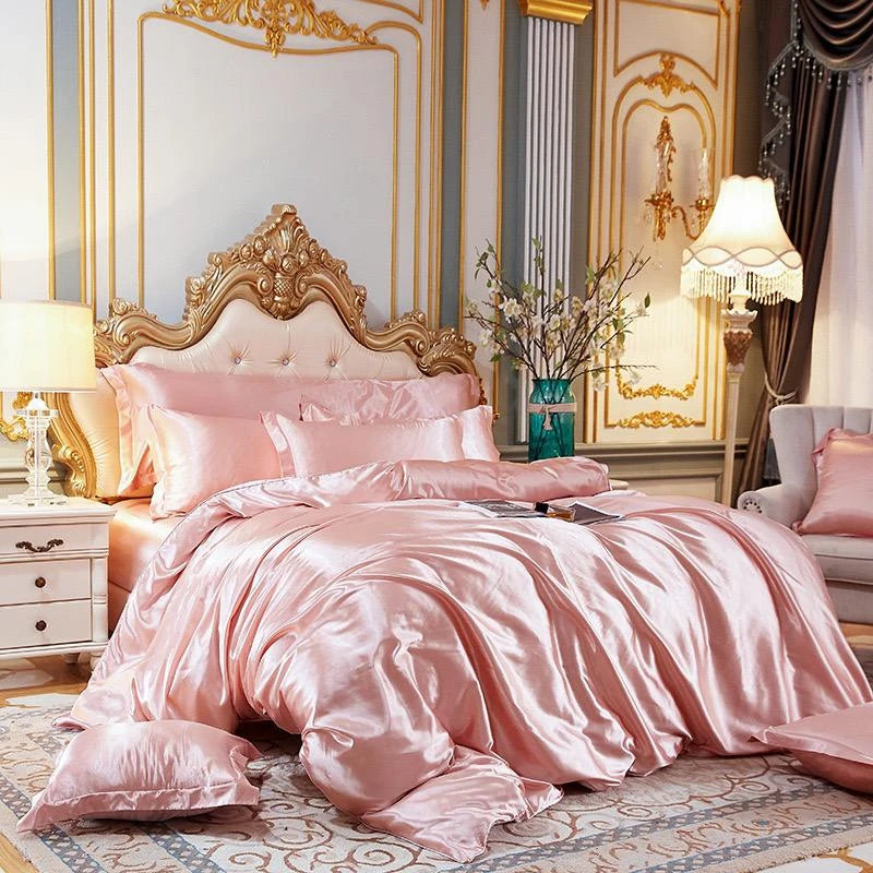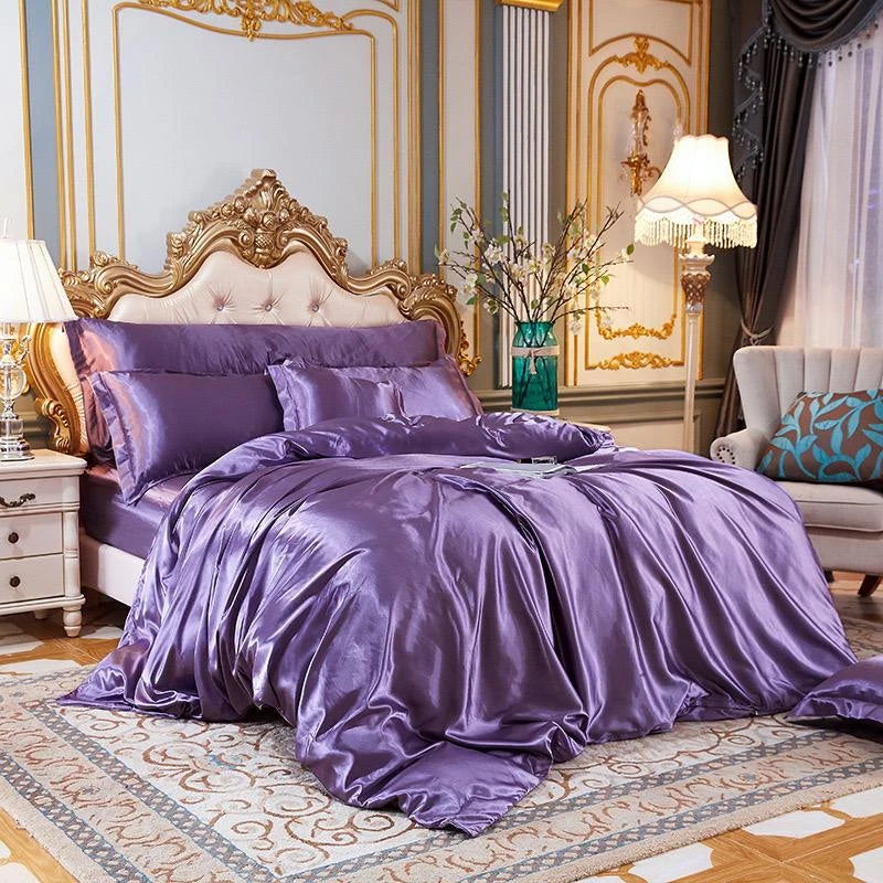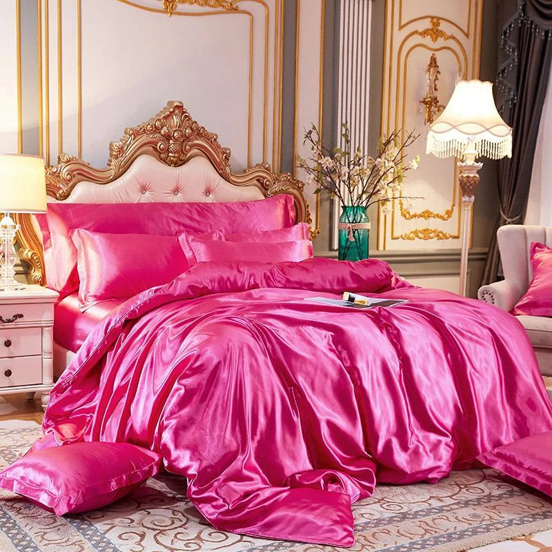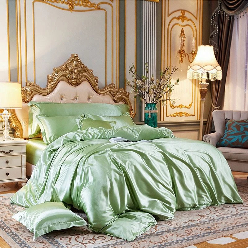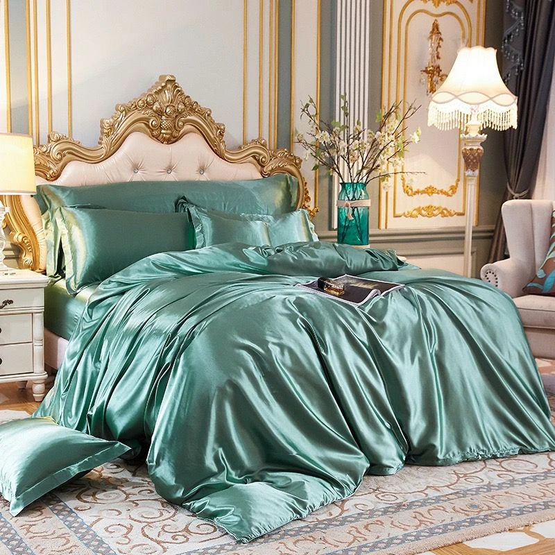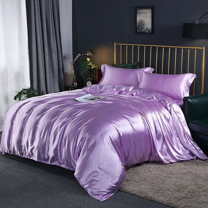 El juego consta de una funda nórdica, una sábana a juego y dos fundas de almohada, para que tu cama esté siempre completa y elegante. El satén transpirable y duradero es hipoalergénico, conserva su color y brillo y, después de cada lavado, sigue siendo tan lujoso como el primer día.