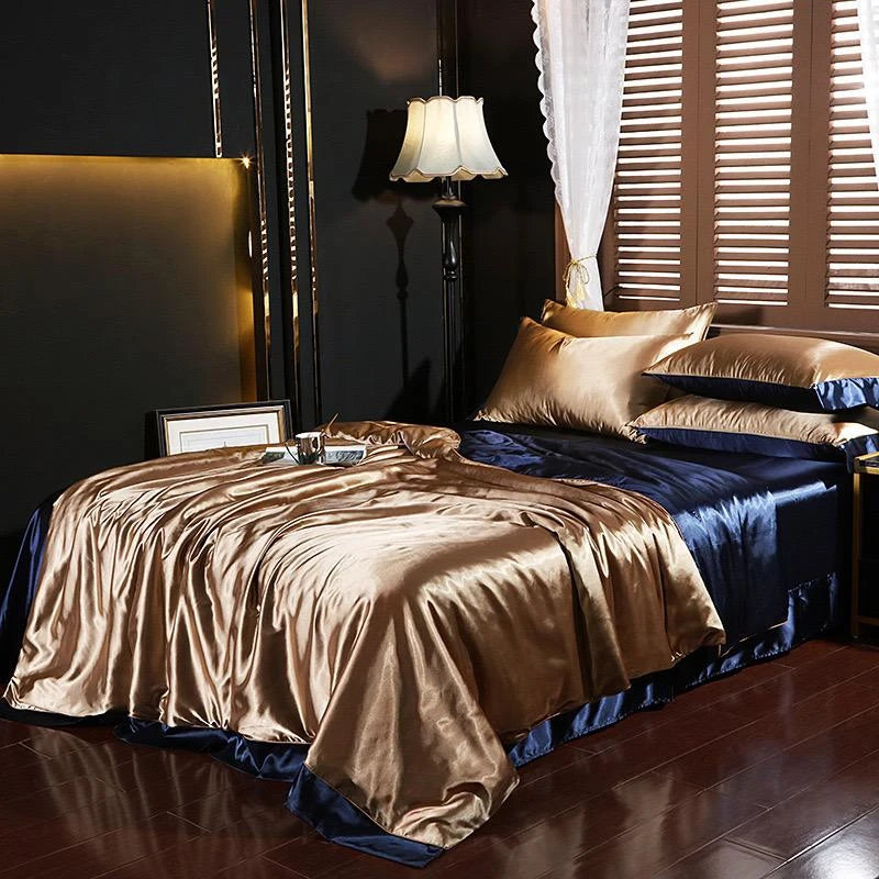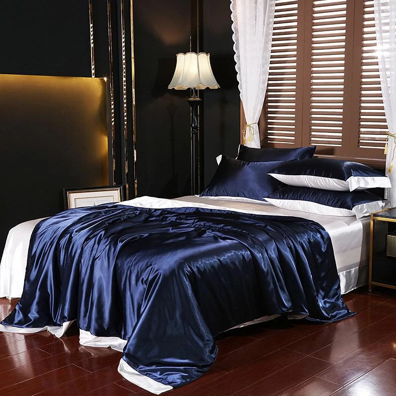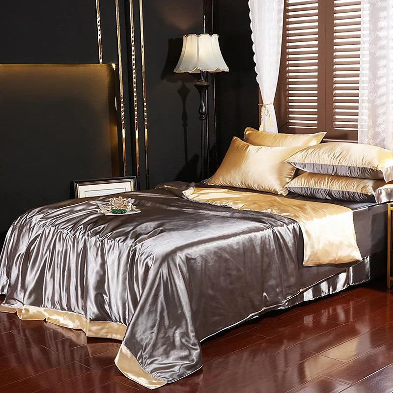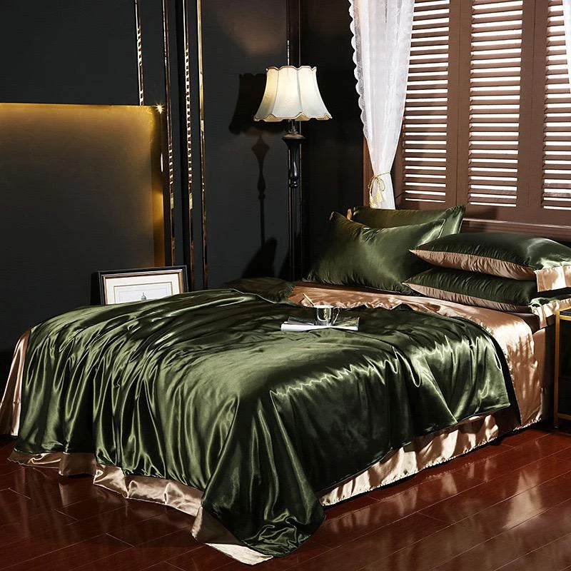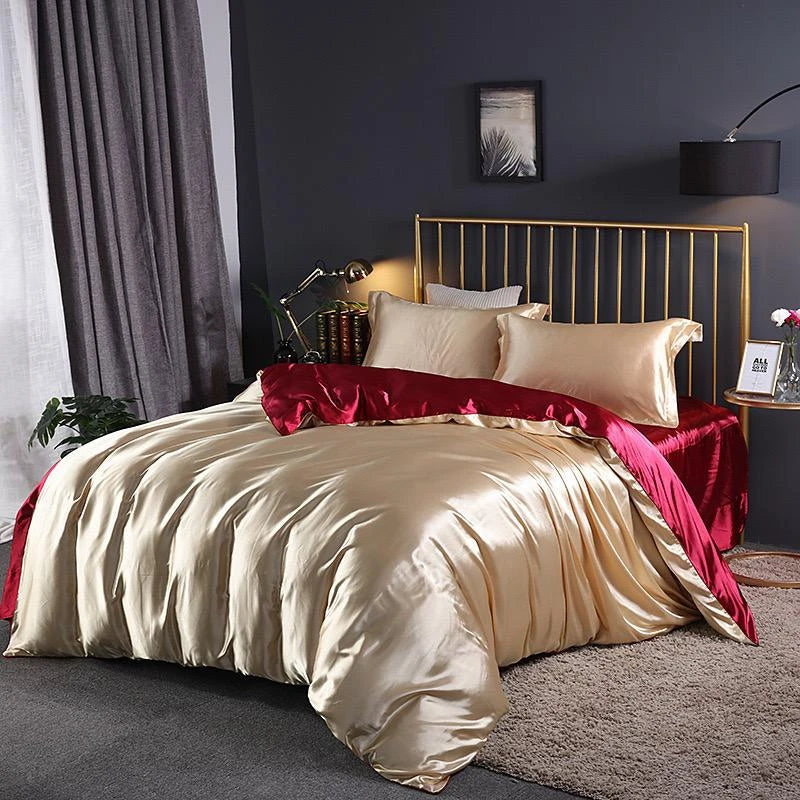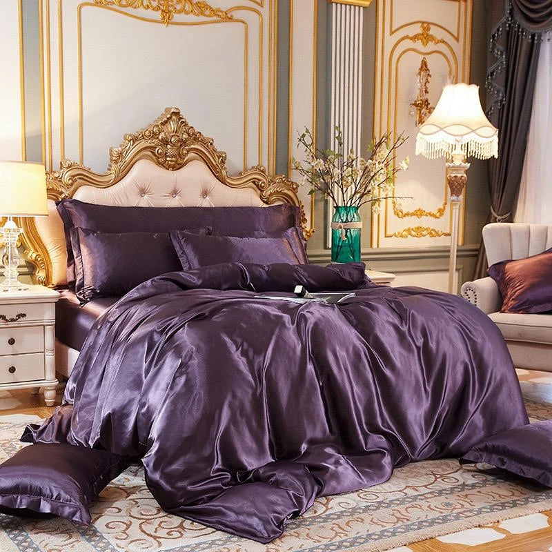 El juego consta de una funda nórdica, una sábana a juego y dos fundas de almohada, para que tu cama esté siempre completa y elegante. El satén transpirable y duradero es hipoalergénico, conserva su color y brillo y, después de cada lavado, sigue siendo tan lujoso como el primer día.